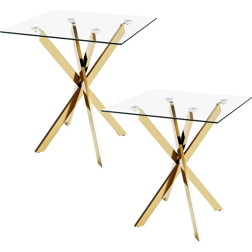 Glass Side Tables Set of 2 with Golden Chroming Legs for Office and Living Room