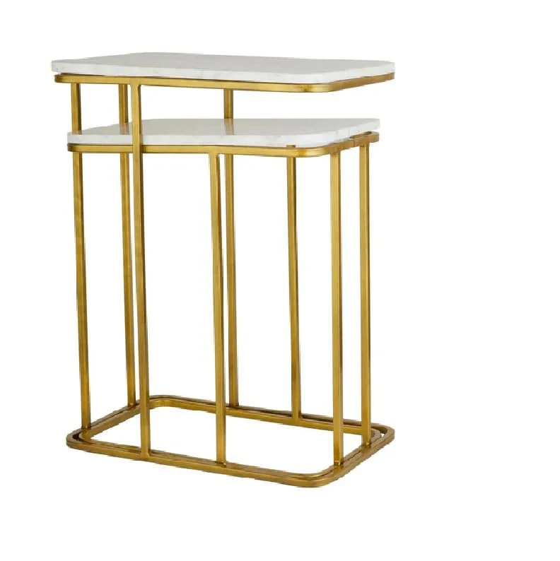 The Table Set of Two will add flair and character to your living area. This table’s gold and white finish will improve the appearance and feel of any space. This side table is ideal for any living area because it can be used as a nightstand or to contain decorative elements.